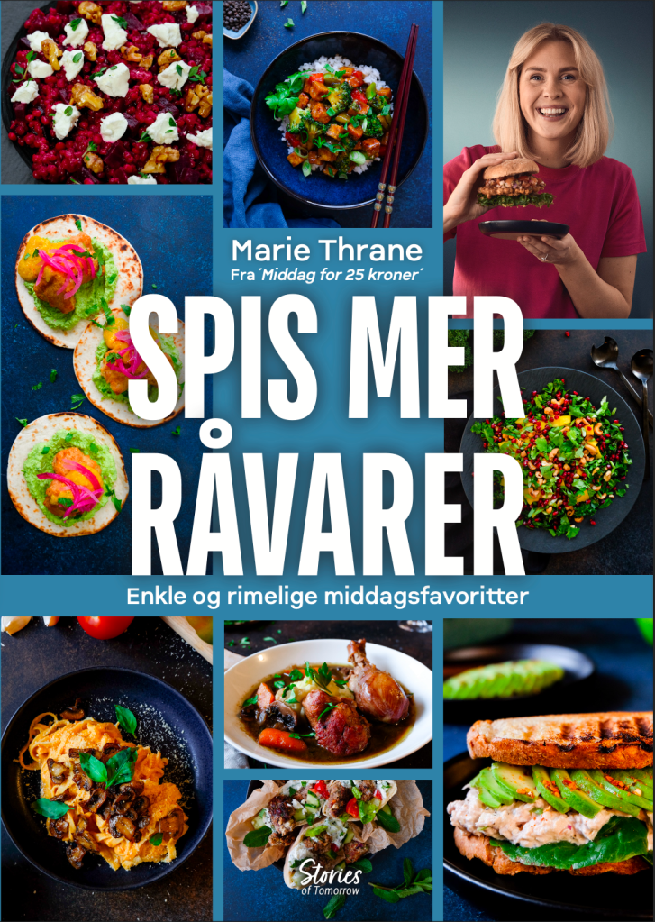 Min nyeste bok Spis mer råvarer – enkle og rimelige middagsfavoritter er full av inspirasjon til rimelige middager, middager du lager når du har dårlig tid, matredderoppskrifter og råd for et bærekraftig kosthold. Håper du finner noen nye favoritter, for her det masse digg å velge mellom!